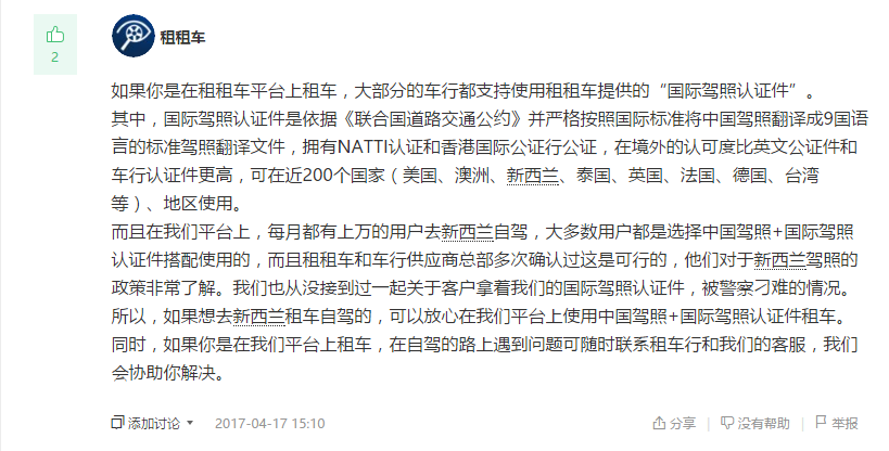从租租车的回答来看,这是相当不负责任的。他们只和车行供应商多次确认,而不是自己去研究相关的法律条文或者咨询专业律师,如果真的出了什么意外,车行供应商是不会帮你向执法部门做任何解释的。